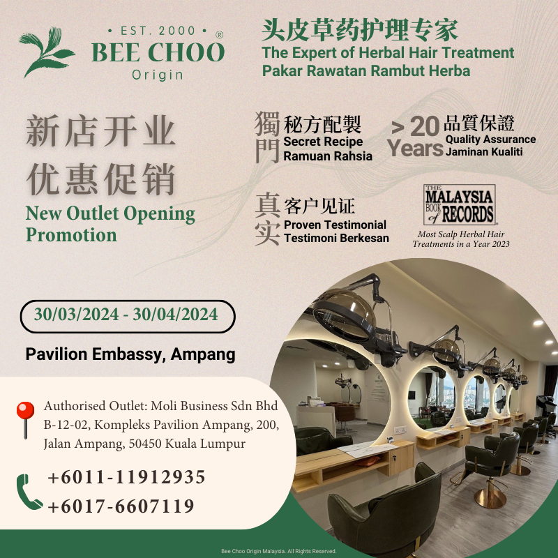 Bee Choo Origin specially launches 🧧 RM88 First Herbal Hair Treatment Voucher for the 🧧2024 New Year! 🎉🎉🎉